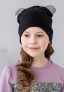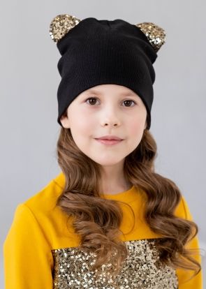 Шапочка с ушками, для девочки, выполнена из трикотажного полотна «рибана». Шапочка состоит из двух слоёв, с одним задним средним швом. Ушки шапочки выполнены из отделочной ткани с пайеткой.