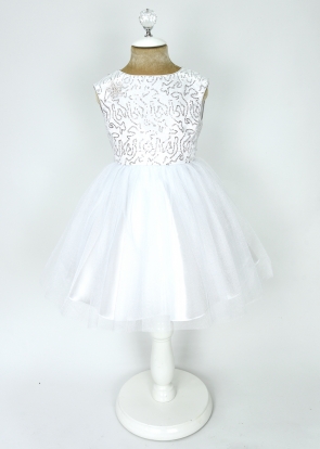 Нарядное платье с контрастной юбкой из однотонной ткани. Платье полуприлигающего силуэта, отрезное по линии талии из атласной ткани с верхним слоем сетки. Лиф платья двухслойный (атлас с верхней сеткой пайеткой). Горловина и пройма лифа обработаны в тон, кантом из атласной ткани. Атласная юбка полусолнце. Верхняя юбка из сетки с густой сборкой по линии талии. Обхват по талии регулируется с помощью п/поясов из атласной ткани, которые завязываются сзади в красивый бант. Украшением этого воздушного платья является оригинальная брошь на лифе. Производитель оставляет за собой право изменения дизайна отделки, фурнитуры и оттенка ткани без потери для внешнего вида и качества изделий.
